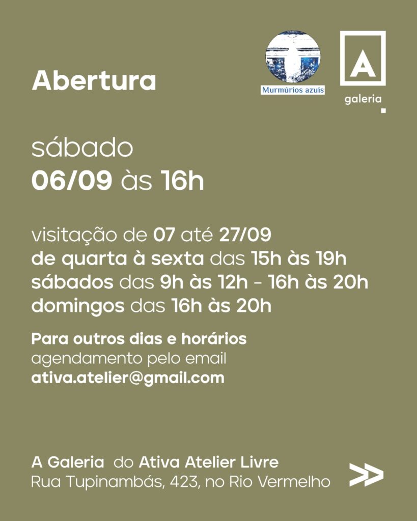 Local: Galeria do Ativa Atelier Livre (R. Tupinambás, 423 – 1 andar, Rio Vermelho, Salvador/BA).